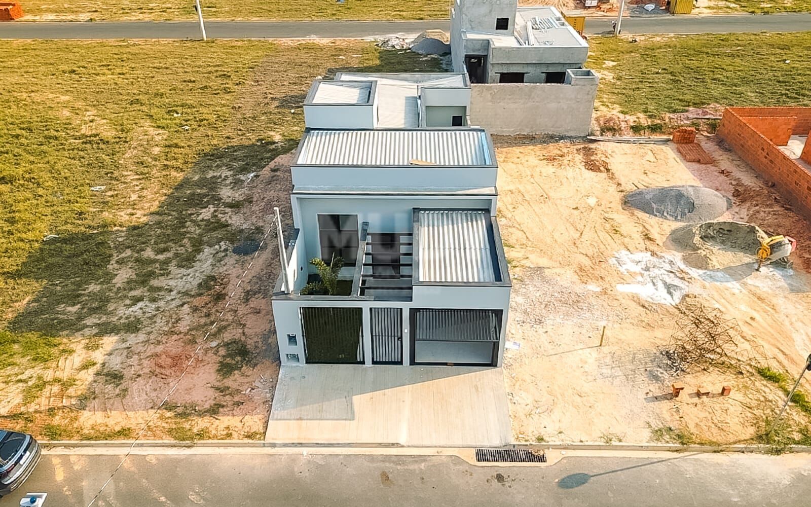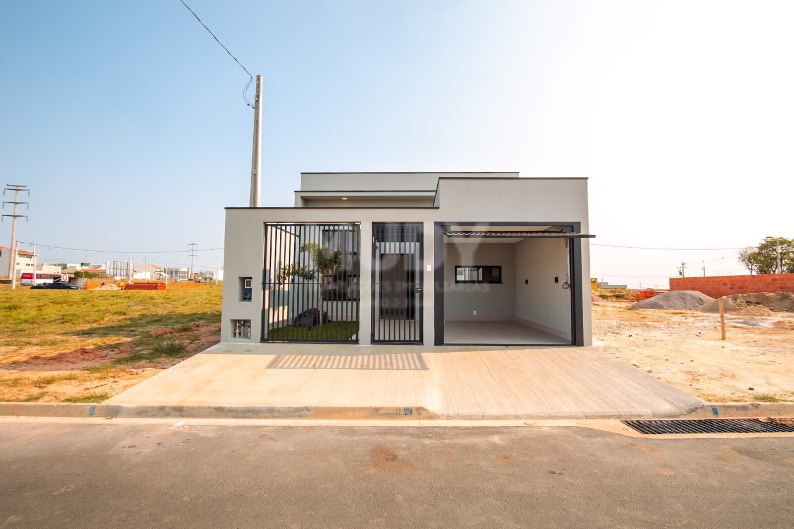 A garagem acomoda 1 carro, com espaço extra disponível. Um projeto pensado em cada detalhe para oferecer praticidade e sofisticação.
